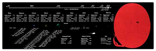 This exciting cylinder projects scaled representations of the sun and the principal bodies of the solar system in color with tables of basic statistics. The enormous distances between the planets are shown to scale. The cylinder also features a colored depiction of the Milky Way Galaxy, complete with spiral arms and a scaled distance line. Full supporting curriculum and suggested lesson plans are included. An indispensable aid for the teaching of astronomy for middle school and up!